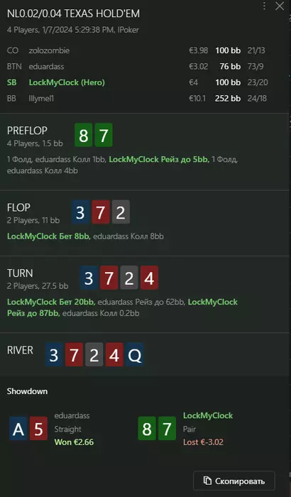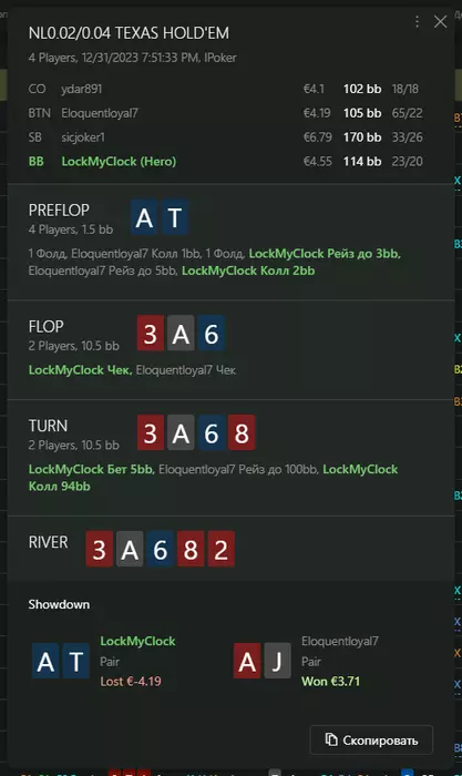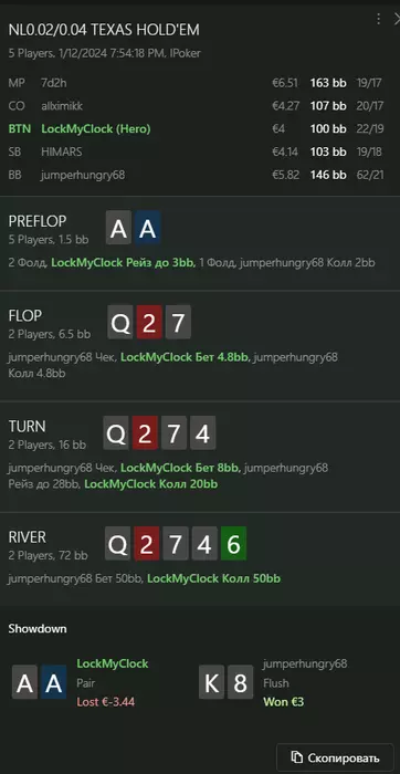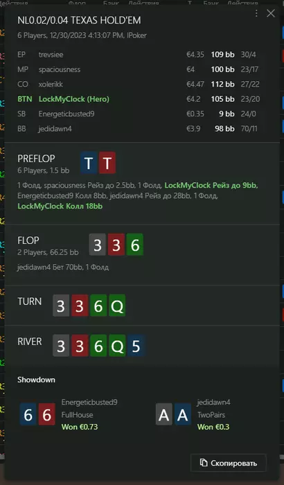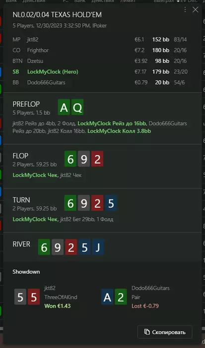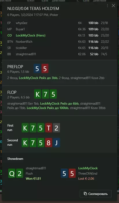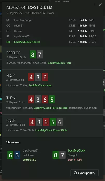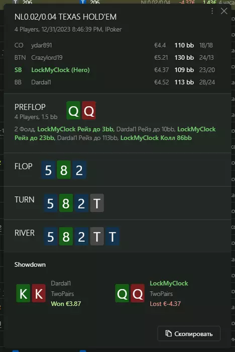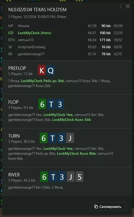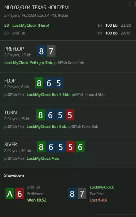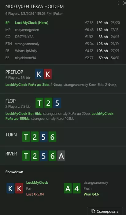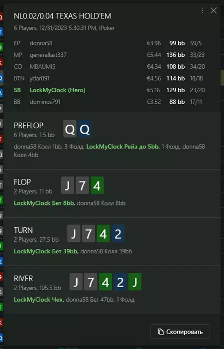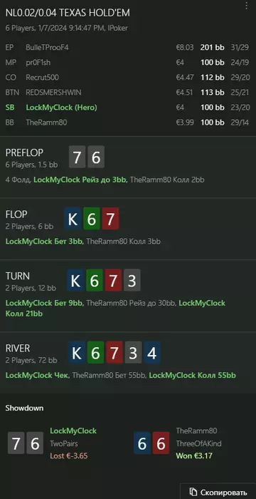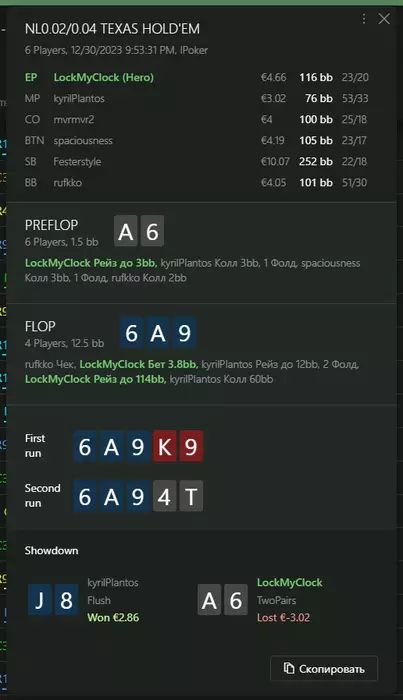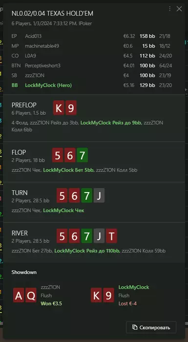 Переапался знатно , по сути в 0 сыграл. Одни стриты и сеты с флопа и почти все монетки выигрывал.