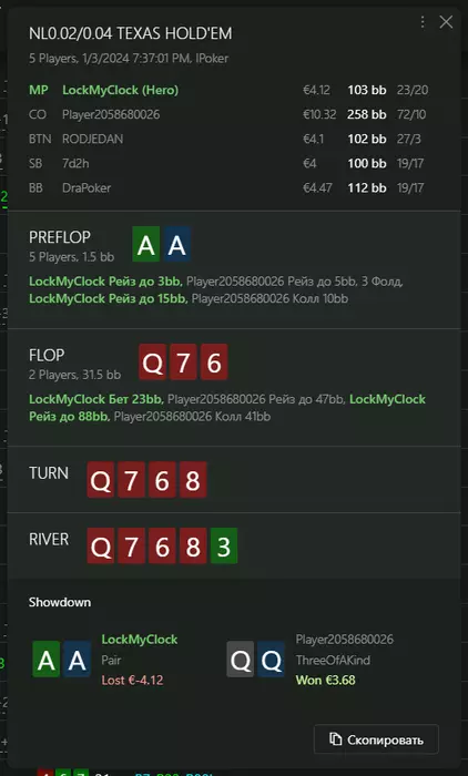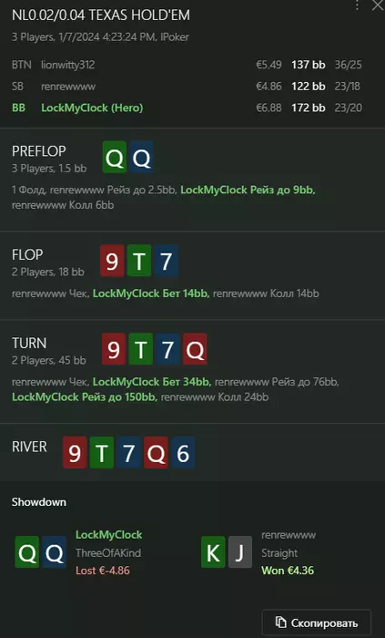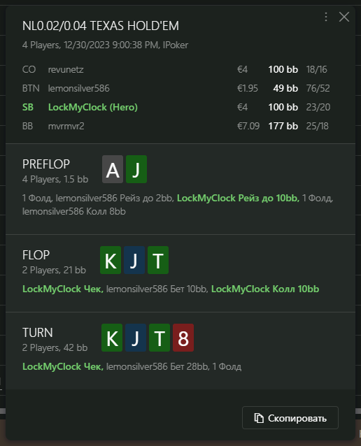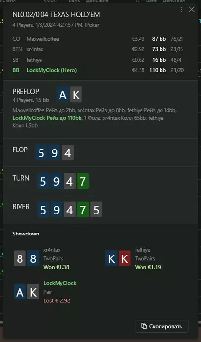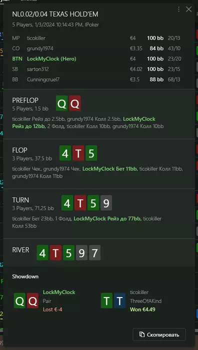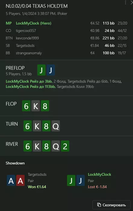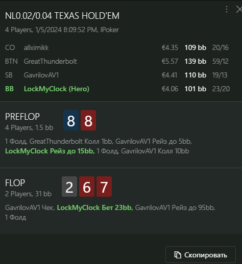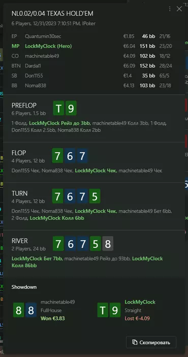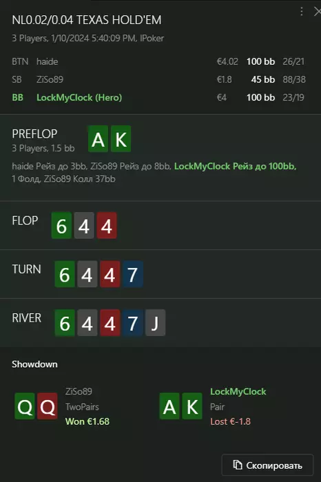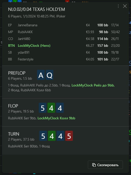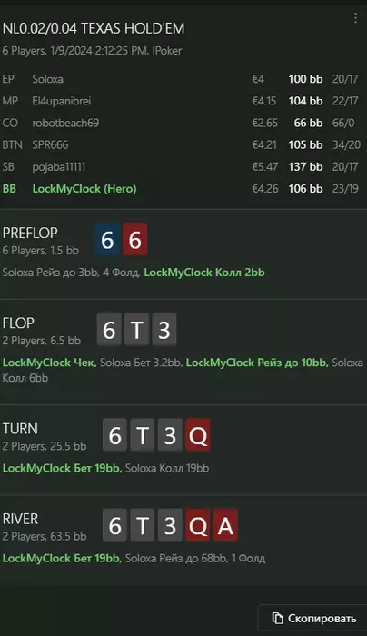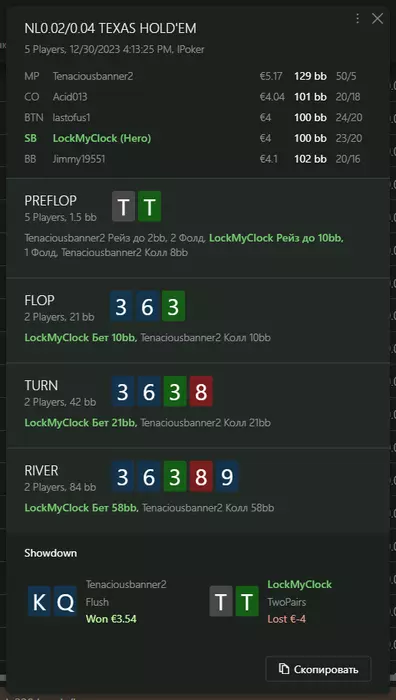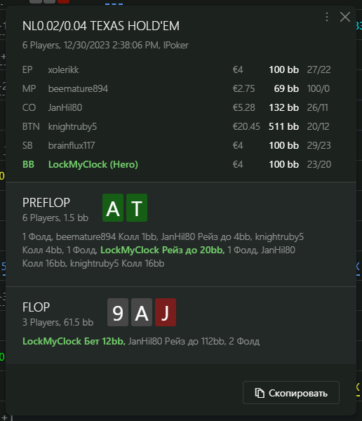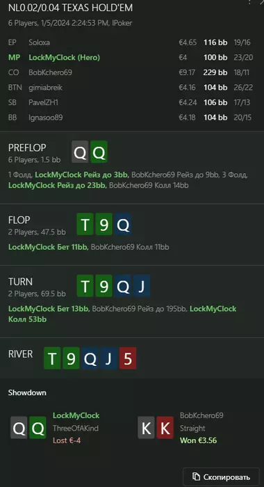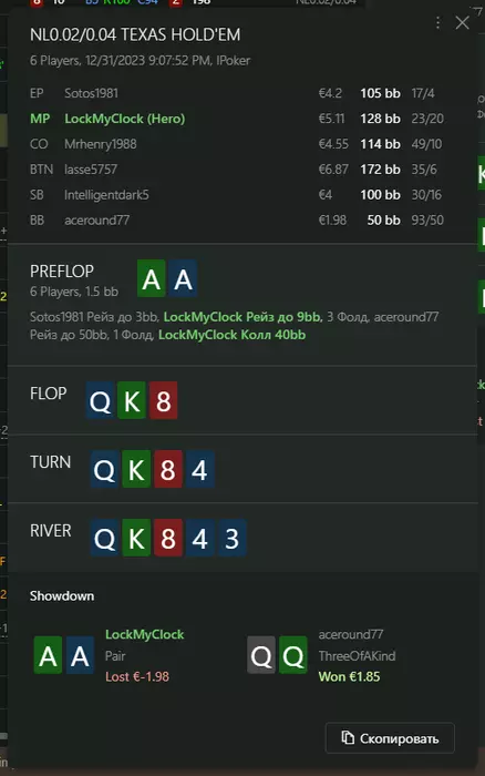 Переапался знатно , по сути в 0 сыграл. Одни стриты и сеты с флопа и почти все монетки выигрывал.