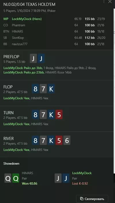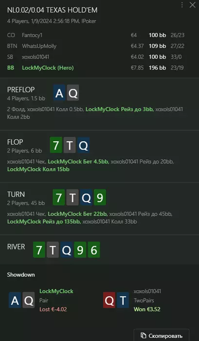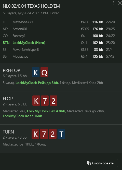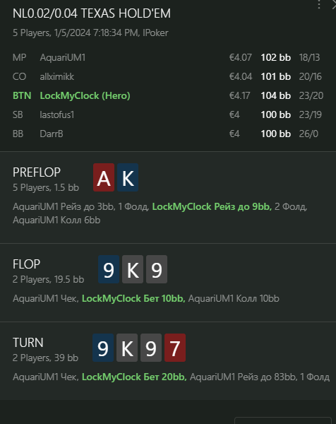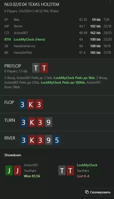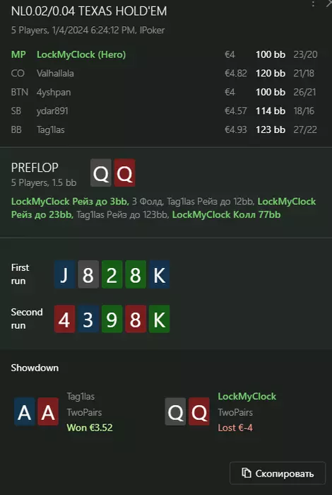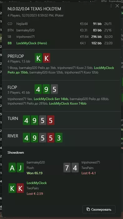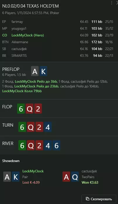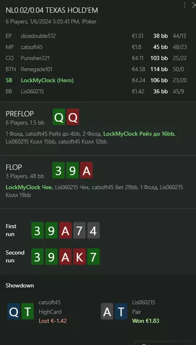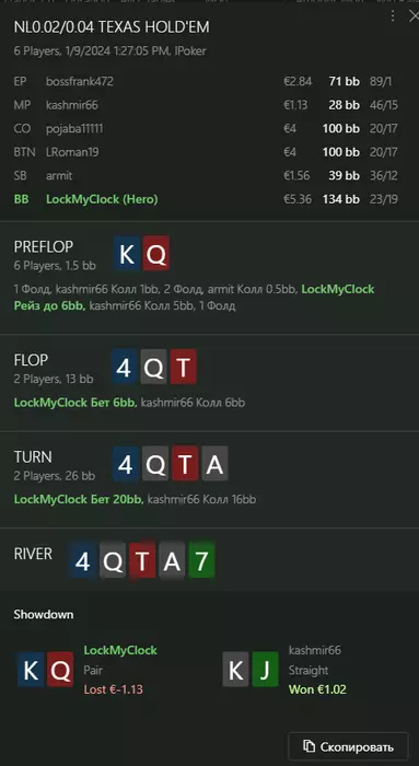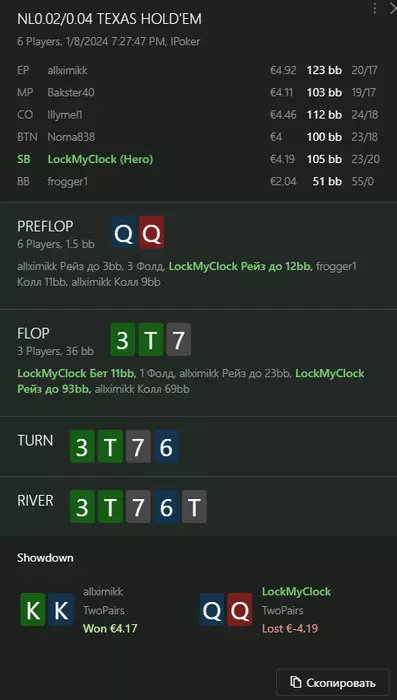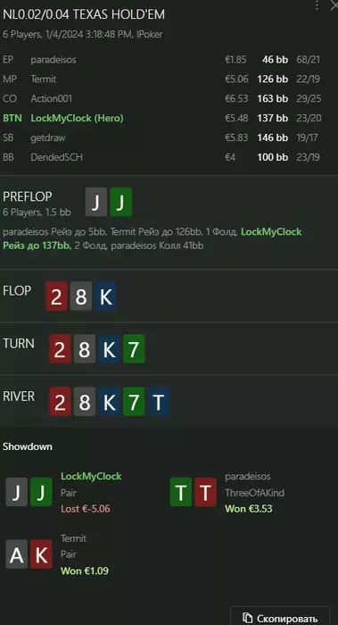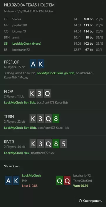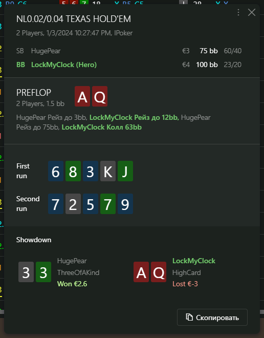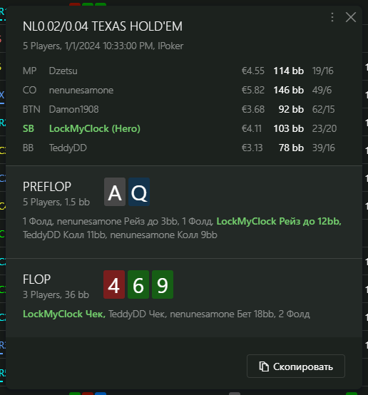 Переапался знатно , по сути в 0 сыграл. Одни стриты и сеты с флопа и почти все монетки выигрывал.