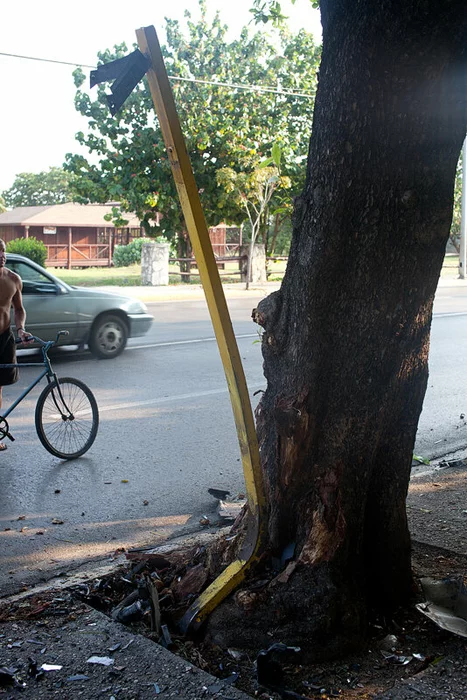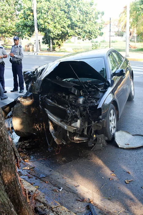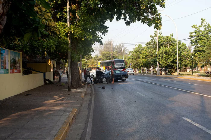С утречка поехали сдавать свой пыжик назад в ренткар. По дороге на центральной улице Варадеро наблюдаем ДТП. Новая прокатная А4 уебалась в дерево