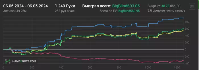 По итогу в рамках этой недели недобор 30+ БИ по графикам, но тут еще не учитываются раздачи где я Фишу оставляю 2 бб условных на Ривер и меня перекупают в 2-3 аута, таких раздач было еще стеков на 5+-
