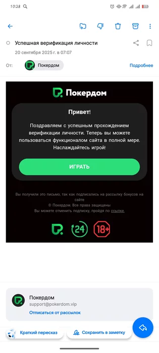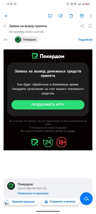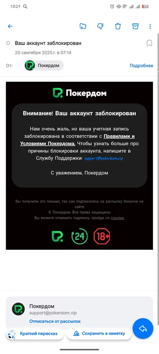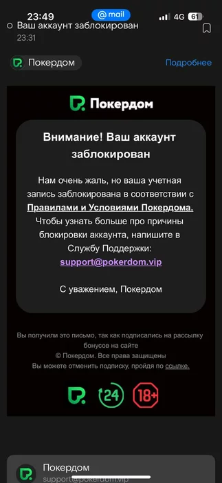 Также можешь дополнительно уточнить по своему аккаунту в службе поддержки рума. Связаться со службой поддержки Покердом можно через онлайн-чат на главной странице сайта, либо по почте help@pokerdom.support