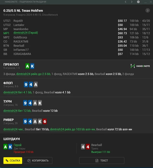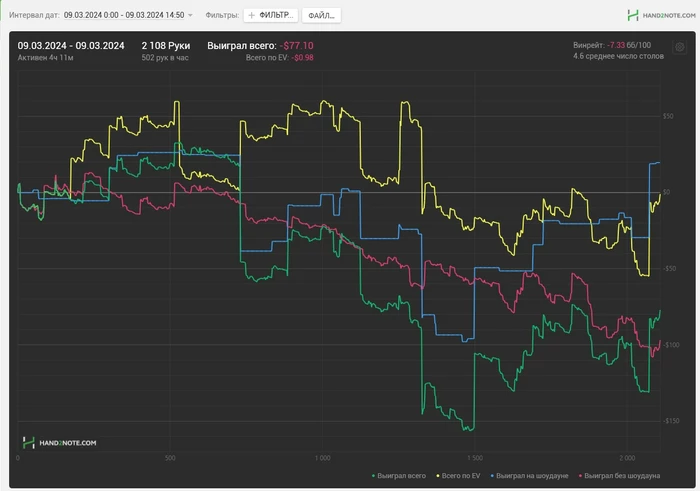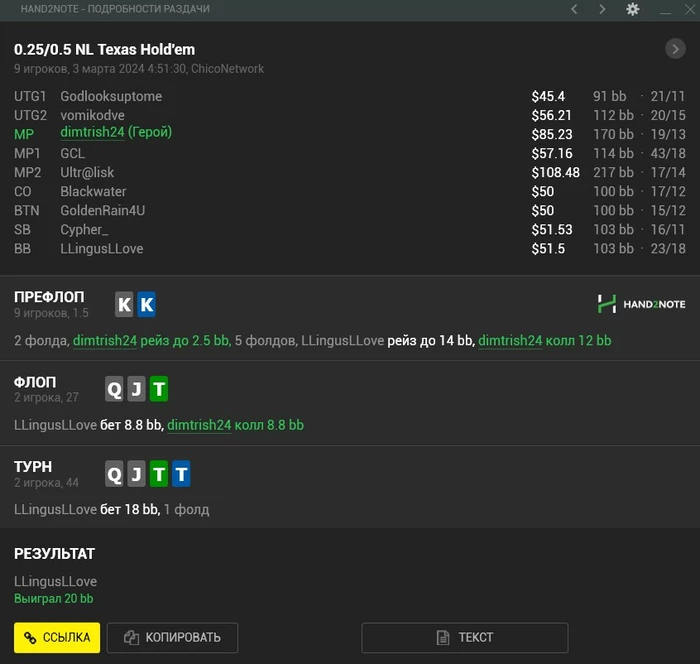 Пробовал раздачки по фильтрам разбирать? Может твой винрейт теряется на таких раздачах как две предыдущие? Мы с тренером когда посмотрели мои,там тоже было достаточно таких спотов сомнительных,если не делать лишних мувов,оно то и сберегло бы немного тенге