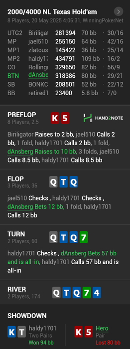 dAns, людям в принципе невыгодно переблефовывать на регулярной основе, на низких лимитах. Нет у оппонентов той дисциплины, которую дает понимание, что ты за сессию проигрываешь серьезные бабки, если будешь колить все подряд. А тем более за месяц.
