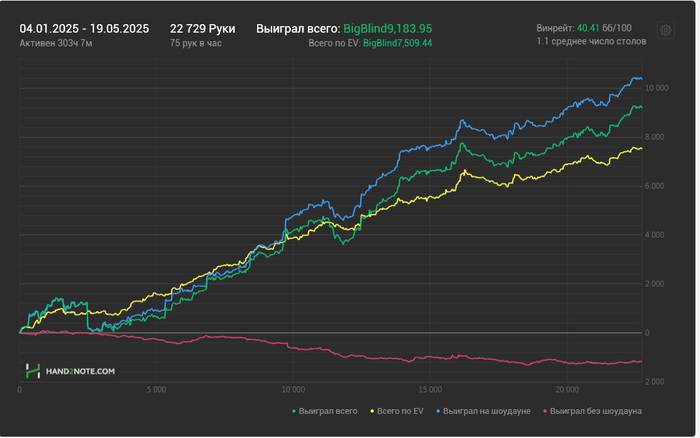 Здорово, что ты себе сделал режим вокруг покера. Это профессиональный подход.