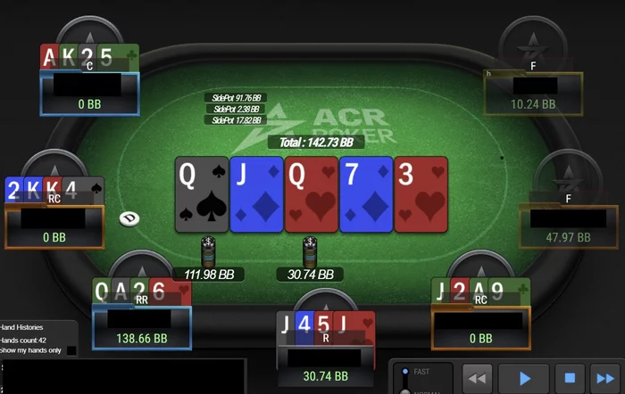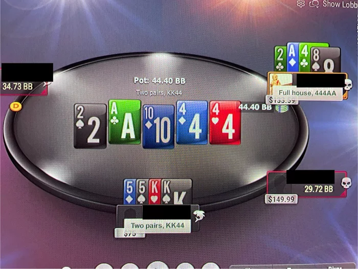 Ровно слева от меня появляется агро-маньяк c огромным стеком, который поливал меня плотными ставками на пост флопе. Так он продушил меня до самой финалки