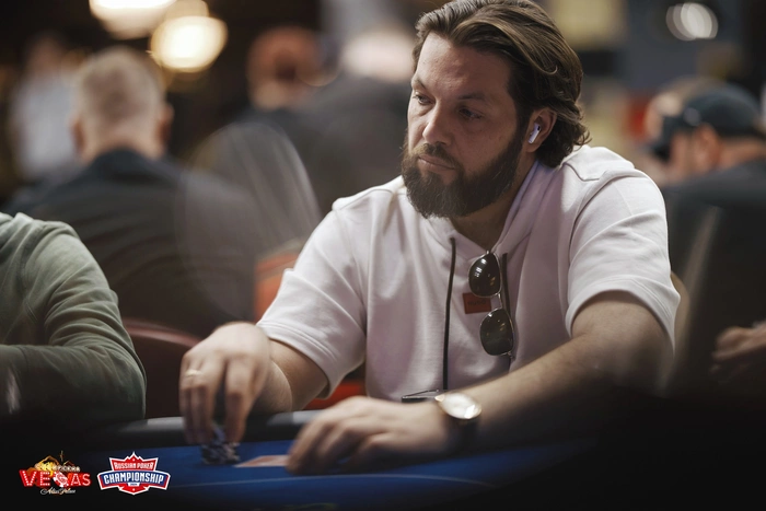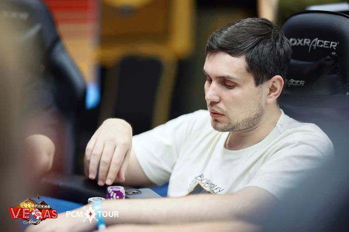 На терне Иван Мадиссон перекупил оппонентов, а на ривере увернулся от аутов Шарояна. Мадиссон утроился до чиплидерских 215,000, Шароян проиграл больше половины стека, Бабаев — аут.
