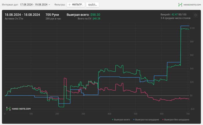 Как и ожидалось, внепокерных дел навалилось много. Играю мало и короткими сессиями. В плане концентрации, даже лучше выходит. По ощущениям, на 50 игра даже лучше чем на 20-ке. Ну и я особо не агрюсь, сижу спокойно, смотрю шоудауны, делаю выводы..