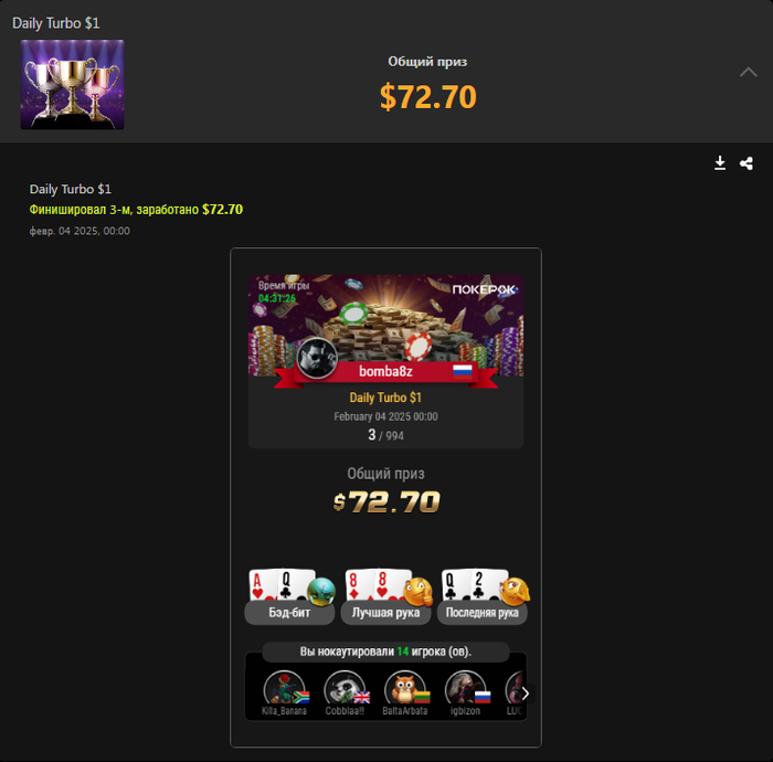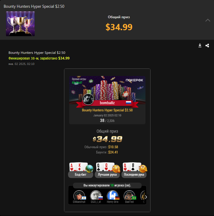 в покере такого нет - чем дороже вложился в успешную затею, тем наглее у тебя это отобрали в самом конце. и так из раза в раз. жри помои, кушай споты по 3-5бб, а большие споты мы у тебя отберем. ибо нехуй, страдай) баунти большие захотел? хуй тебе, на вот тебе мелочь и иди гуляй.