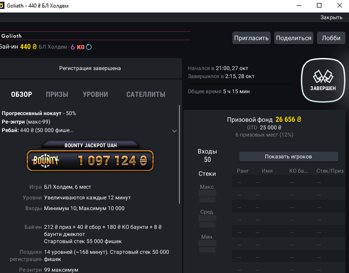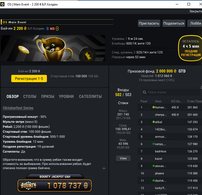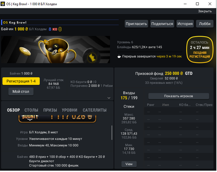 Этот турнир можно играть 5 входами одновременно, но оптимально играть одним входом тогда ты получаешь над остальными игроками определенное неигровое преимущество.