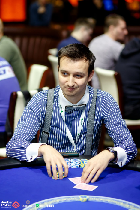 Алексей Спетницкий с первой запушил 6 ББ на . Павел Ольхов (UTG+1) репуш 13 ББ на . Старшая пара устояла.