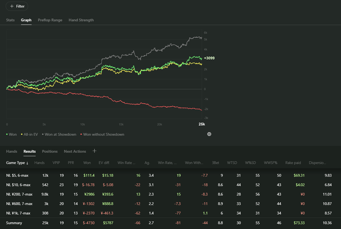 Вот так откатал с начала обучения.Шоты на лимиты нл18 и нл32 были неудачными.График в ББ,смотреть тока на винрейты.