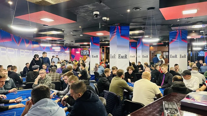 Зал забит под завязку, вечерний турнир рассадили по 10-макс и в нем все равно образовалась небольшая очередь.