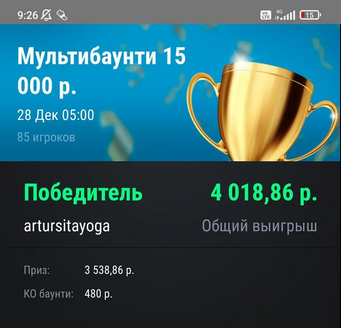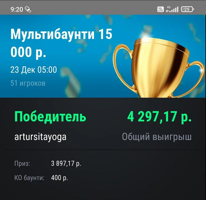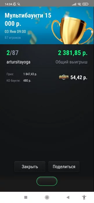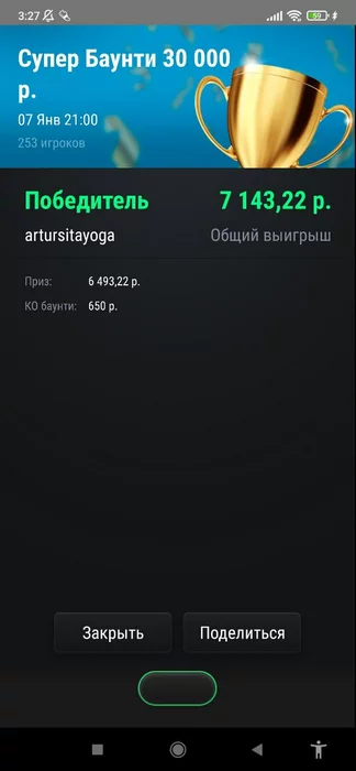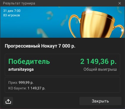 Хороший конец года, отыграл 12 туриков почти все в призах и многие выйграл 🙊 +23000р.