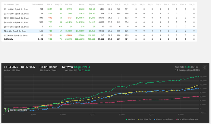 1. Начнем с приятного, на первое мая я понюхал первые норм денюжки))) Мой общий выигрыш за все время перешагнул 1000$ c учетом рейка, я даже подумал что блог можно было назвать старт с 50$ до 1000$ но уже поздно.