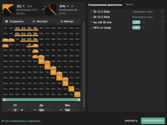 BackInTime @ 25.01.25и раз-два в неделю уделяй время солверу (тут не знаю как лучше именно работать в солвере, у каждого разные подходы). У гто визард хорошие есть туториалы.