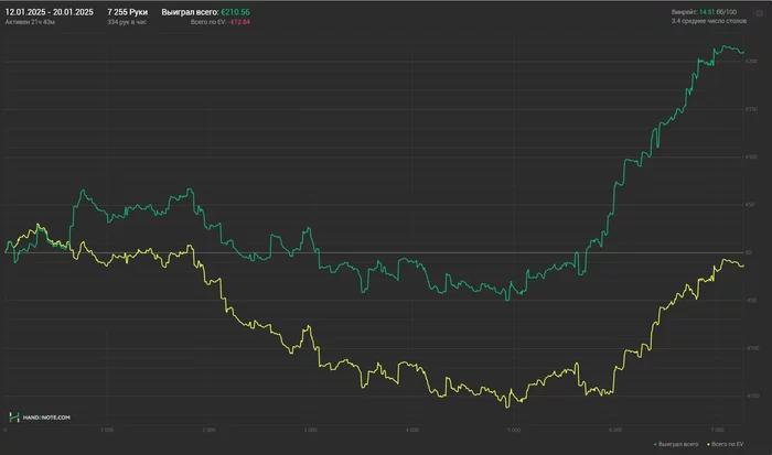 Насчет дистанции. Тут вообще палка о двух концах для меня. Я бы мультитейблил как не в себя, чтобы набивать дистанцию. Но боюсь при таком подходе не буду особо прогрессировать. С другой стороны более внимательная игра на нескольких столах хороша для обучения, но так дистанцию не набить, а значит и диспа будет ощущаться гораздо неприятнее. Пока строю стратегию, наверное стоит играть меньше столов... Даже не знаю как лучше для меня. Думаю со временем разберусь. Я по сути только начал серьезно относится к игре. Надо дать себе немного времени, и ответы сами придут.