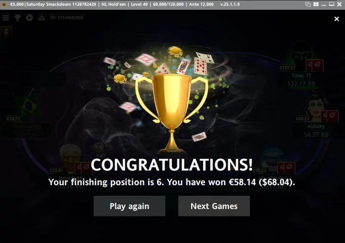 Единственный позитив — садился тут ради конвертации кеш-долларов в обычные в спины 6-макс на Покерке, лимиты 0.25 и 1. Вот там я царил и божил, выпало три турнира с множителем х20, два из них потащил, да и в обычных турнирах с мелкими множителями х4 и х6 много выигрывал, даёт о себе знать закалка в бомжовых СитЭндГоу, когда они существовали. Правда, по итогу выигранные деньги я залил в килополях.