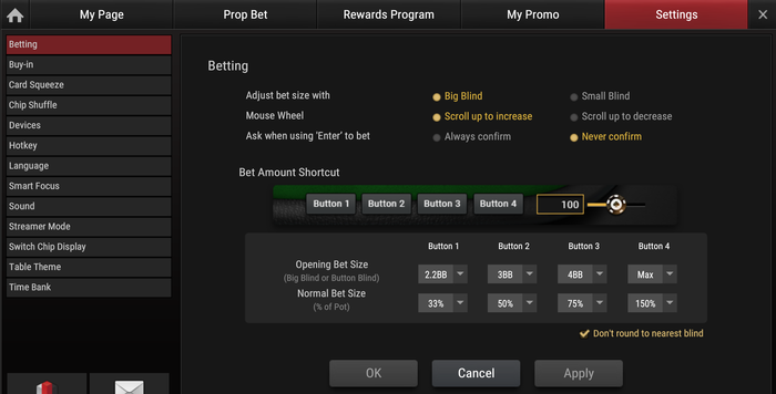нужно использовать 150% кнопку из-за того что не правильно считает пот из-за того что мы на бб сами!