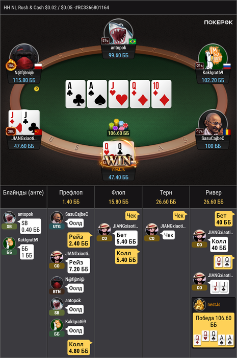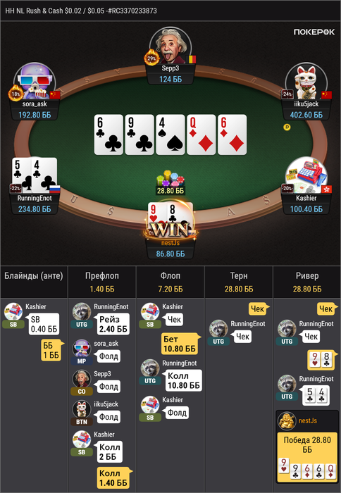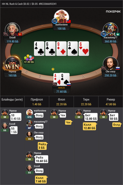 рад первому успешному овербету на велью, но опп максимально странный или я чего-то не понимаю? я думал добрать со стритов а он походу думал выбросить свой фулл на ривере?