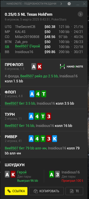 На этих лимитах АК всегда 4 бетит? AQ часто будет 4бет играть? Зависит в т.ч. от того насколько ты тайтово играла за столом.