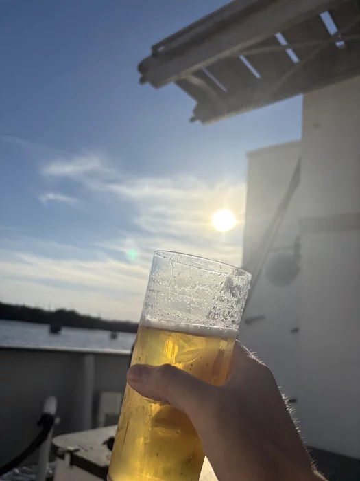 Почуяв движ на корабле затем долго не мешкаясь взял этот Корабль-бар на абордаж. Затем через несколько мнгновений в хлопнул пiва в хвостовой части судна