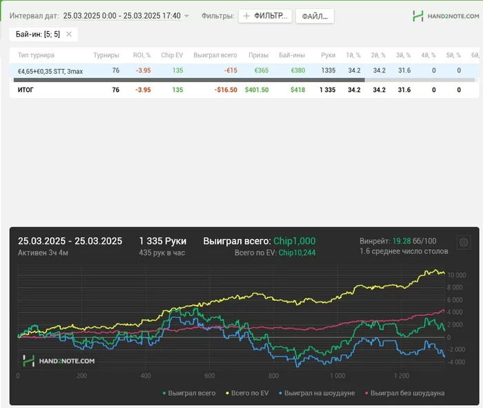 Итог тестирования ня пятерках | -15 евро. Конечно, график не плох 🤘 Но, учитывая что я играю без пула, на свои деньги… отыграно в минус. Позже зайду покатаю еще, может исправлю ситуацию, кто знает. Лимит больше не давит, чувствую себя хорошо, почти как дома. Ко всему привыкаешь, когда то и двойки на меня давили.