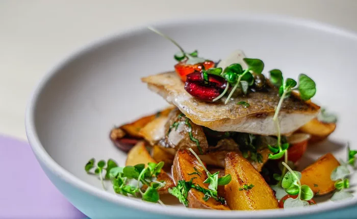 Стейк палтус с овощами не просто рыба с гарниром. Это идеальный баланс вкусов - нежный, сочный палтус с румяной хрустящей корочкой, ароматные овощи, которые раскрывают вкус рыбы, и тонкие акценты свежих трав, добавляющие лёгкость и завершённость. Каждая деталь от прожарки до подачи продумана до мелочей. Камера буквально влюбилась в это блюдо, но даже лучший снимок не передаст того бесподобного вкуса.