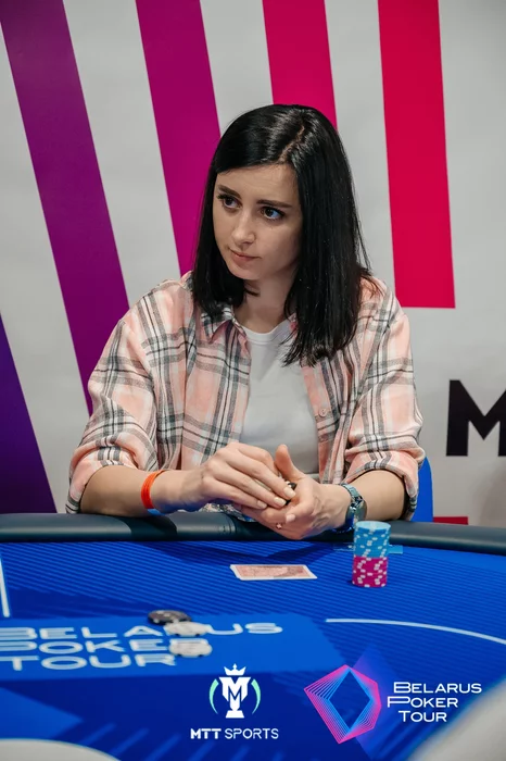 Тоже в последней раздаче перед перерывом вылетела Анастасия Абрамович. Сначала проиграла с топ-парой против доехавшего стрита Олега Мещерякова. На оставшиеся 1к выставила в лимп Егора Макаренко, Смирнов крутанул до 8к.