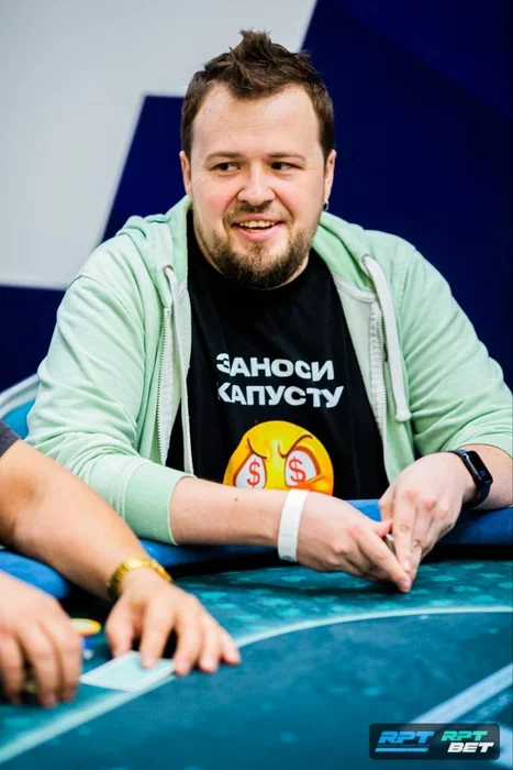 Вадим Уханов запушил 34к с , с баттона репуш сыграл Антон Шевченко (140к+) с , Даниил Пилипок (47к) на малом блайнде нашел и заколировал третим.