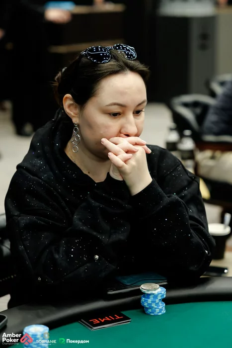 На префлопе с BB она поставила все свои шесть блайндов в центр стола с