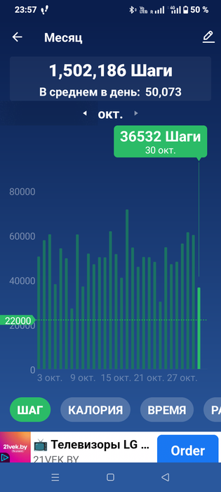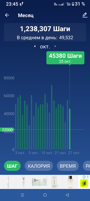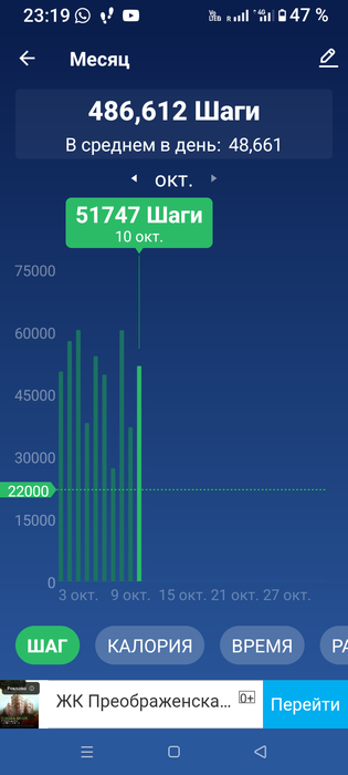 Очевидного ориентира в 500 тысяч шагов за 10 дней достичь не удалось. Правда, среднее необходимое значение пока выдерживается, так как в октябре 31 день, а не 30.
