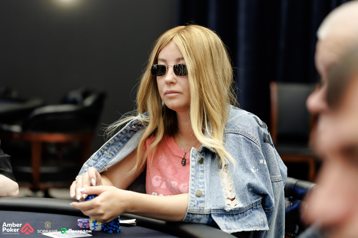 Максим Халтурин (UTG+1) открылся 1.6к, коллом сыграли Станислав Вагин (UTG+2) и Анна Шершнева (CO).