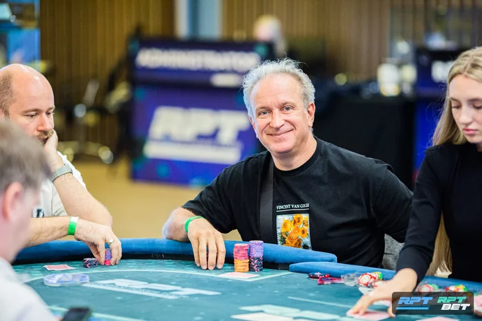 За соседним столом Андрей Петрущенко реанимировал стек с против Лиора Фарибая.