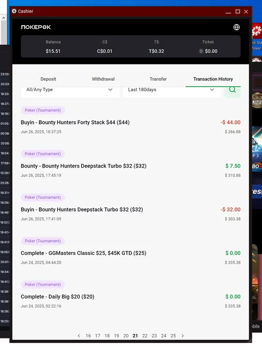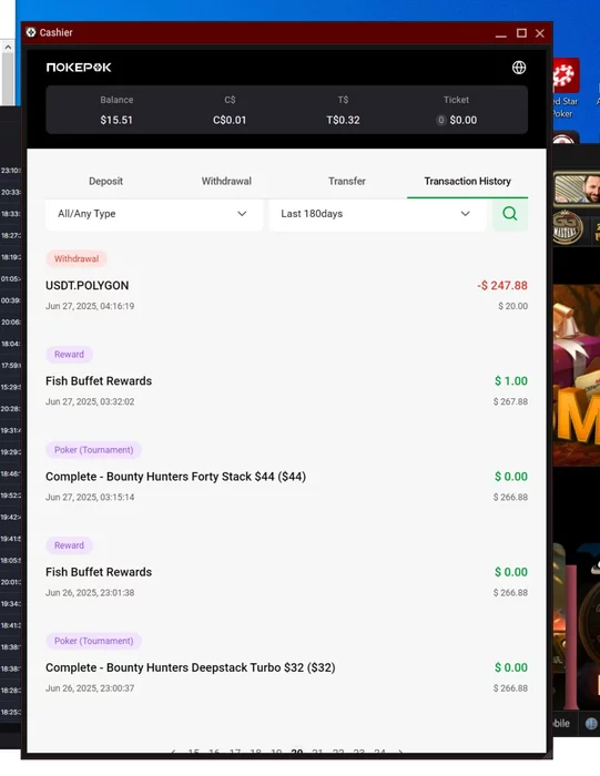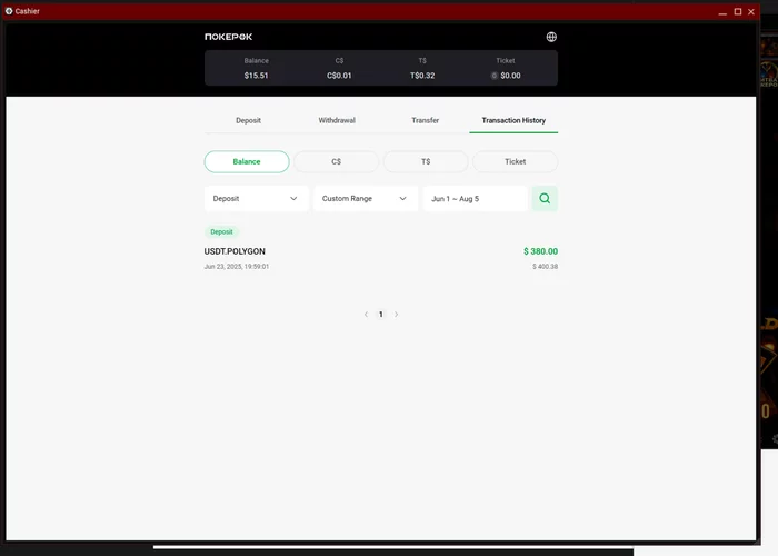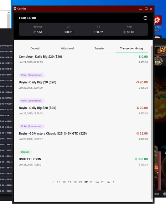 Вывод с CoinPoker: 400$ → депозит на PokerOK: 380$. Остаток 20$ "потерялся".
