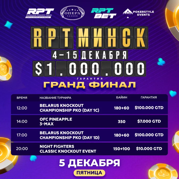 🥊 Марафон нокаутов продолжается — сегодня на турнирной площадке казино Опера стартует второй день большого Гранд Финала RPT.