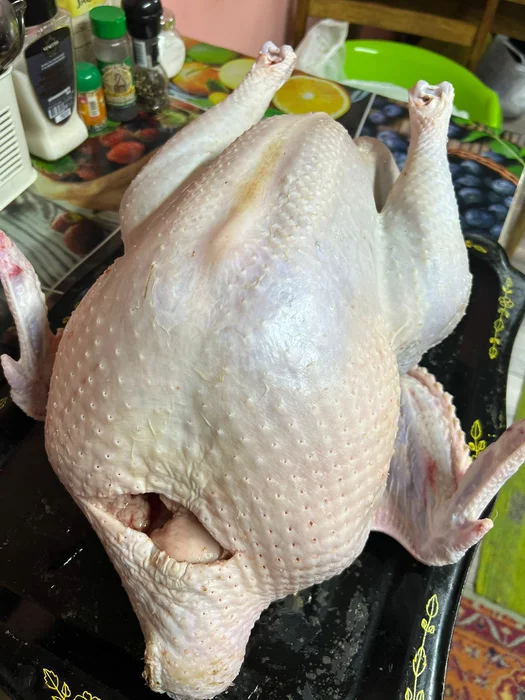 Сегодня на улице по теплее, всего -12 и поэтому, как и планировалось, я рубил индюков. Зарубил трёх пацанов, самый крупный на фото - 9,7 кг. Всего развез 25кг мяса. Хотя на улице и не сильный мороз, когда щипаешь перья голыми руками, то руки замерзают напрочь и лично я очень жду когда потрошения, засунуть руки внутрь индюка и погреть их, ведь температура их тела около 40 градусов и не успевает остыть) Да, мои руки по локоть в крови, не отмыться)