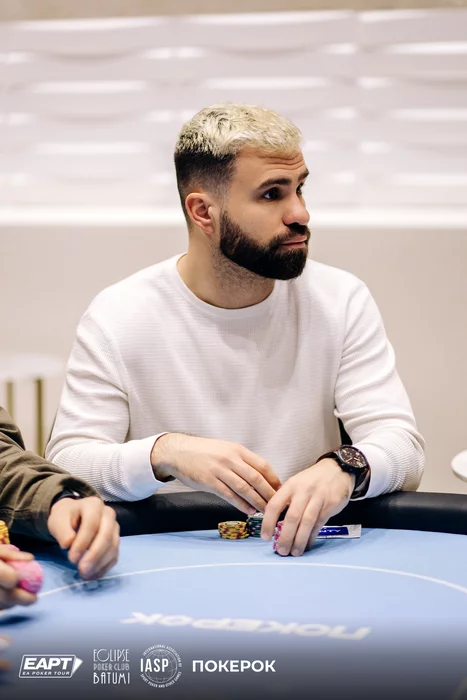 Стол 22. Дмитрий Беликов (83,000) запушил с HJ, Тариель Робанишвили (250,000) уравнял на большом блайнде с .