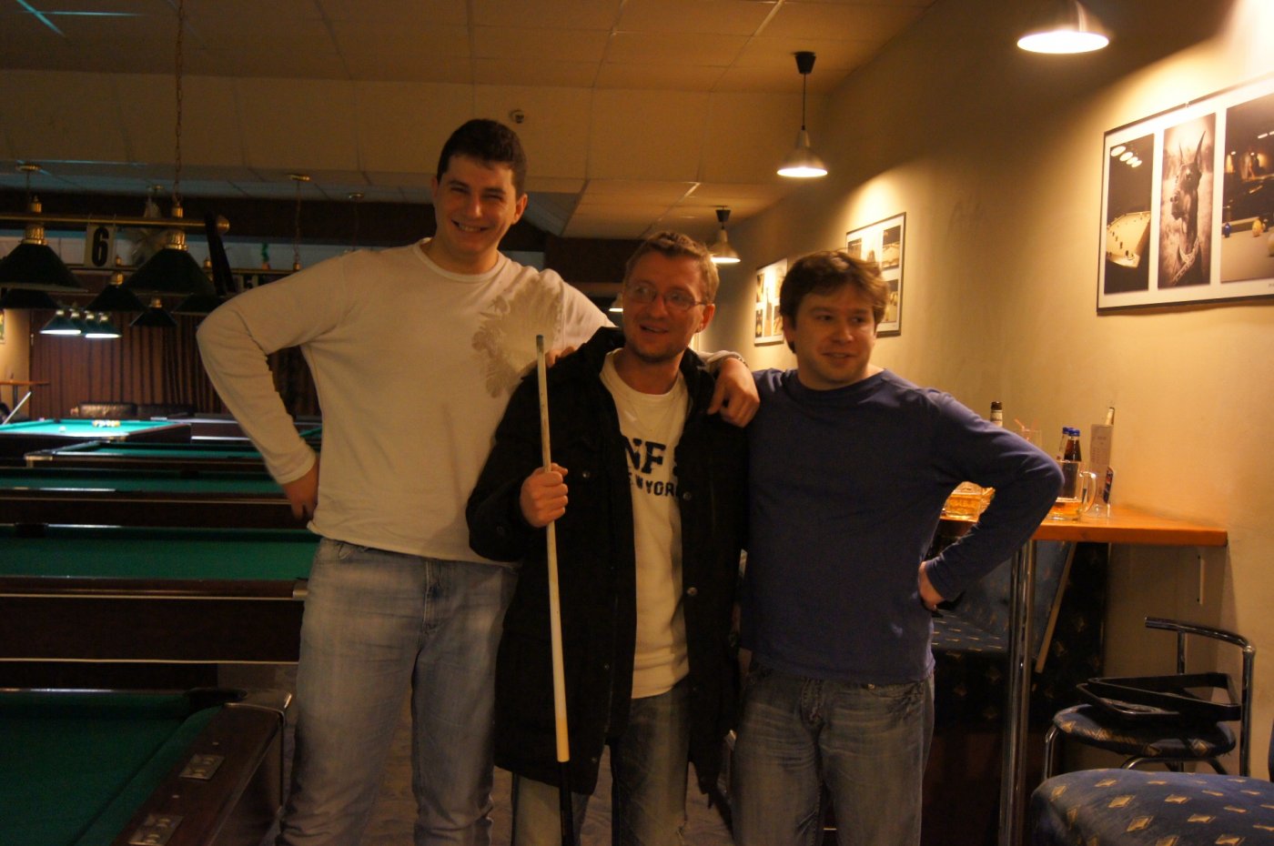 В русский бильярд было решено играть (решением большинства, что выручило нас - мы бы в итоге часов до 10 играли, наверное) в "американку", в пул играли в "8-ку" (я-то, наивный, думал что мы потом и в "9-ку" ещё успеем сыграть).