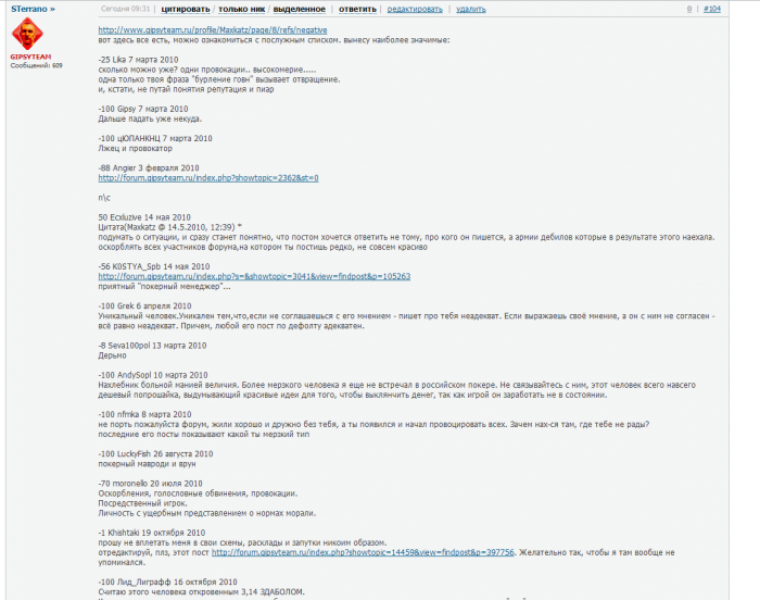Я правда твой ник на Покерофф не знаю, но есть предположение о содержании твоих комментариев там. У меня в блоге где-то 5 человек есть (самый заметный из них был pokerukr), которые изучали мои посты на предмет наличия расхождений с тем, что я говорил раньше и с видом разоблачивших адский заговор писали всякую жесть, типа этой (http://pokerukr.pokeroff.ru/blog/note/1499961/).
