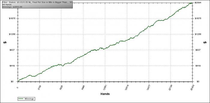 угу, видимо неправильно тебя понял. Кстати у меня в банках больше 100 бб похоже самый большой плюс, 321 бб на 100 рук. По идее это какраз те банки, которые "отвечают за дисперсию"