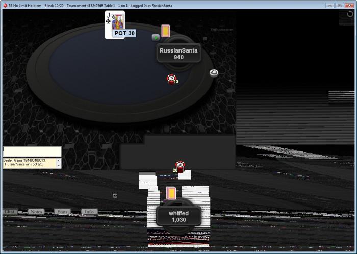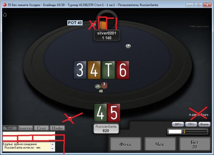 Раздача дня Почему запушил объяснять не буду. Человек играл в неизвестную мне разновидность холдема, наверно Low разновидность. Мог проколить две улицы на доске АКQ78 с 23. Сыграл с ним всего три матча 2 выиграл один он меня переехал. Это последний.