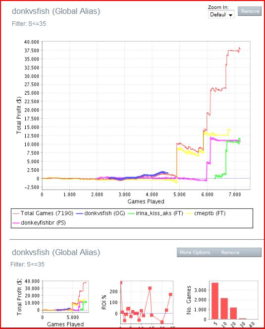 вот график алиаса турниров с би 0-35$ турниры по 100-500 играл от различных команд и проектов. к сожелению на дистанции 80 турниров , результятов нет...играл в основном миллионники и ФТОПСы. 20$-50$ уже достаточно долго и упорно получается гриндить в +с 60% рой Ники на FT cmeptb, на PS donkeyfishBR выиграл лично порядка 8-9 турниров с байинами 20-30$ на 1000+ человек и море мест с 2го по 6ое