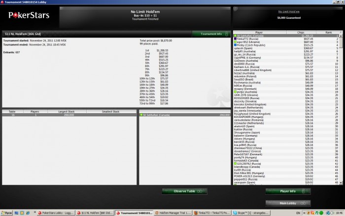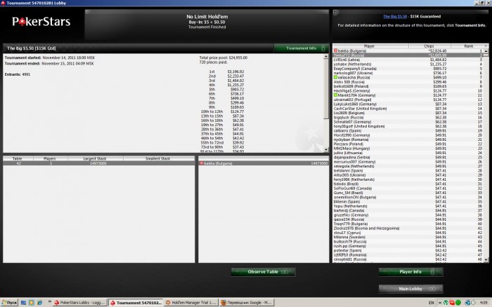 интересно получилось так ,что стол за которым я начал турнир стал в итоге финальным и в течение всех 10 часов меня ни разу не пересаживали)