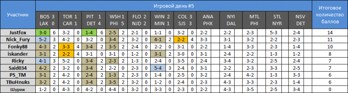Жалко 5й тур провалил, будем наверстывать. Почему-то кажется Джастфокс будет первым, а вот за места со 2го по 4е развернется нешуточная борьба до последних туров.
