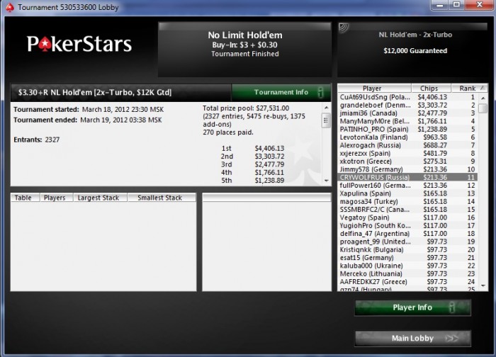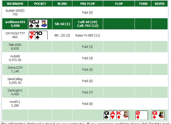 CRYWOLF goes all-in 26,510, xsysteemx555 calls 9,510