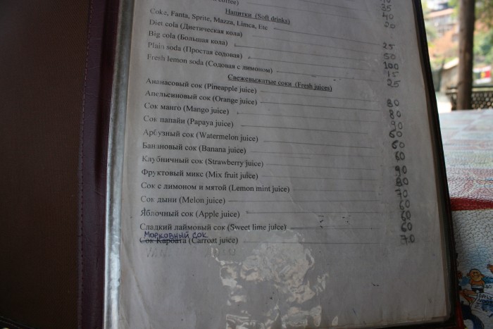 Тут только напитки, но в целом картина думаю понятна, 50рупий = 1$