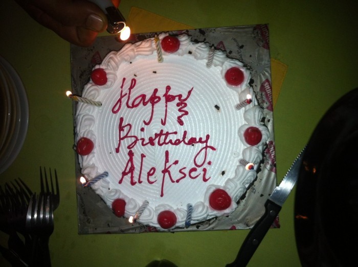 В начале второй части расскажу, как индусы организовали мне ДР. Два моих местных знакомых, первый - весьма известный местный дизайнер, второй - его лучший друг и по совместительству крупный наркоторговец по кличке Тони Монтана, предложили мне заняться организацией праздника на мой ДР. Я согласился. Все проходило на берегу пляжа Калангут в Tony Montana's shak. Меня ни чем не спрашивали, просто несли и несли... лобстеров, креветки, салаты и РОМ. где-то рядом ненавязчиво пел Боб Марли. Под конец был праздничный торт и ... фейерверк на пляже. Все это было приятным сюрпризом... Но самым большим сюрпризом был счет в конце: в него вошло все вышеперечисленное + обслуживание. Я не ильно расстроился - где бы я еще так отметил за 200$)