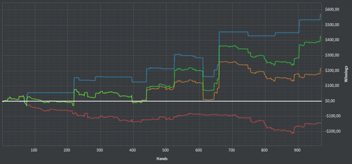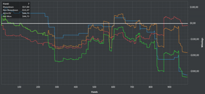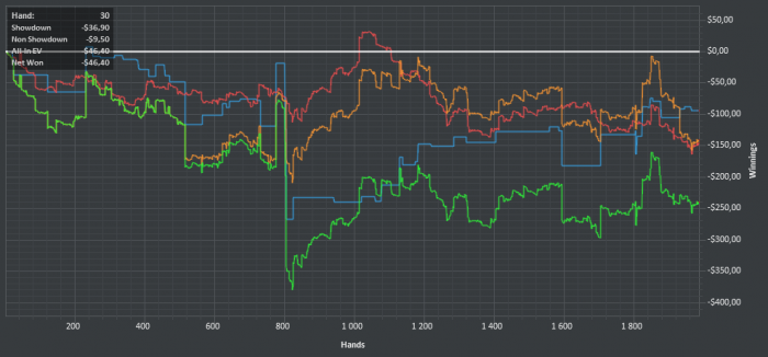Девятый день. Роздавать продолжают хреново + я сыграл 2 роздачи хреново изза чего очень злой на себя. Наверное настало время пройтись по теории и перенастроить ХАД немного, чем и займусь перед следующей сессией .