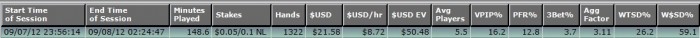 в целом статы стали меньше, наверное пока привыкал к цифрам и ставкам боялся разыгрвать нужное кол-во рук да еще и правильно.. будем стараться.....